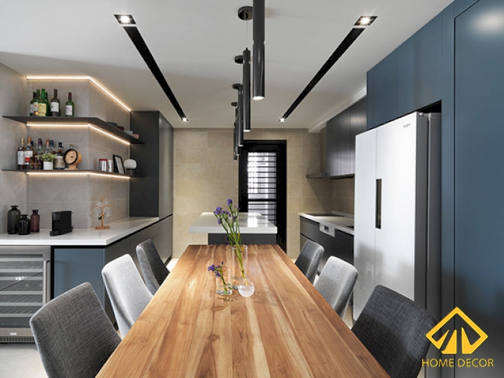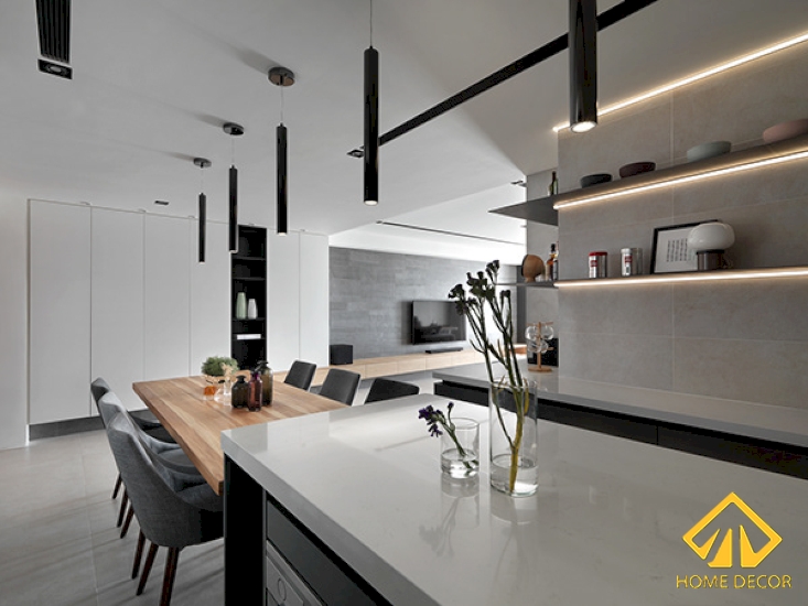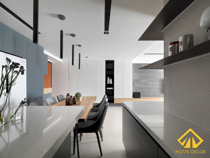 Bước đến không gian bếp nấu ăn này thì để thuận tiện cho việc đi lại cũng như tối ưu được diện tích nên Home Decor đã sắp xếp bố trí khu vực này nằm ngay cạnh phòng khách.