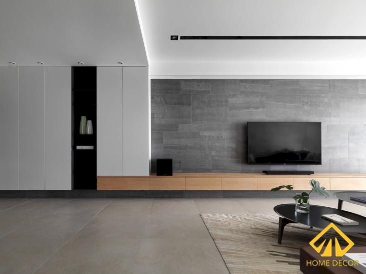 Khách đến chơi nhà chắc chắn sẽ thấy choáng ngợp với kệ tủ tivi kéo dài từ đầu này sang đầu khác. Và đặc biệt hơn cả đó chính là sự kết hợp hoàn hảo với kệ tủ bày biện, tủ đồ,..một cách hài hòa và hoàn hảo.