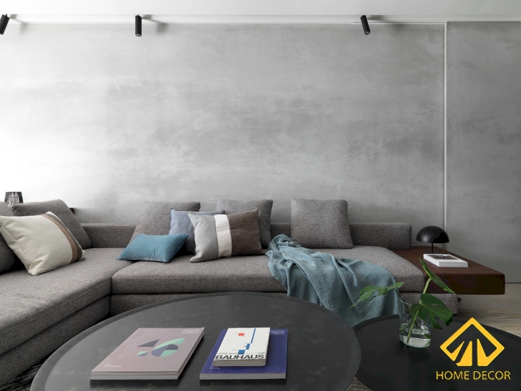 Bộ ghế sofa mà Home Decor lựa chọn sử dụng trong căn phòng khách này có màu xám đậm hơn so với tường nhằm mục đích tạo nên điểm nhấn nổi bật mà vẫn đáp ứng được tiêu chí tối giản.