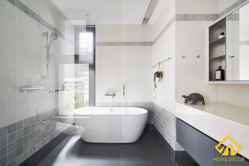Trong căn phòng ngủ này được thiết kế chung với một phòng vệ sinh nhỏ khép kín với tone màu đồng nhất.