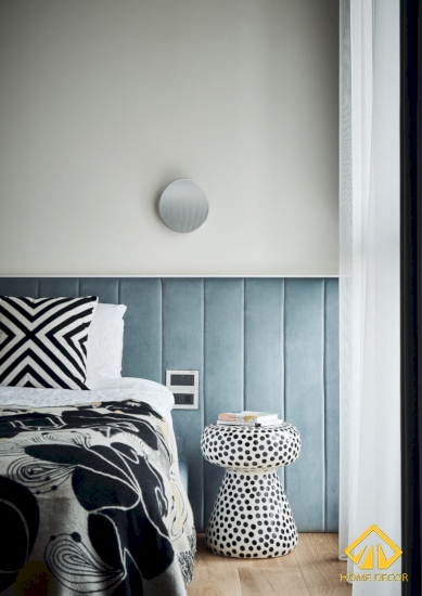 Chiếc giường ngủ mà chúng tôi chọn được thiết kế bằng chất liệu da lộn màu xanh nhạt vừa thể hiện nét tinh tế mà cũng trẻ trung. Cùng với đó chính là một căn phòng ngủ tủ quần áo vừa tiện lợi mà còn có thể trưng bày các mẫu phụ kiện.