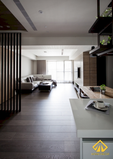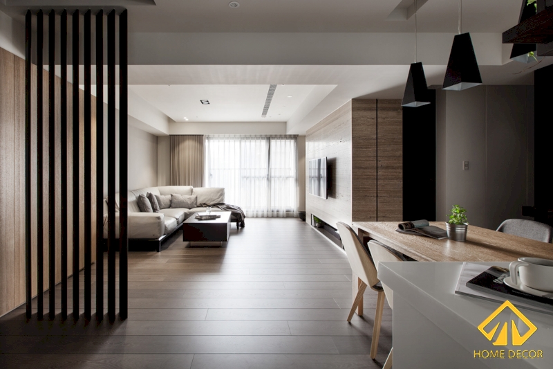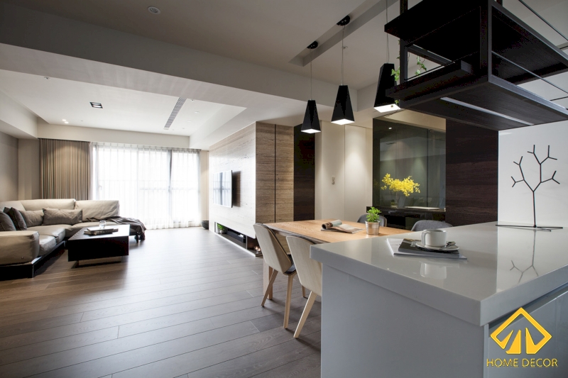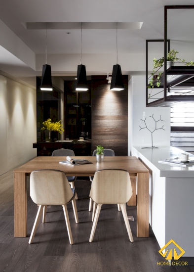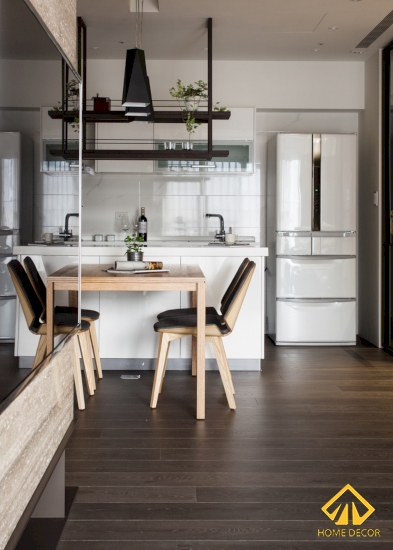 Để tạo nên sự đổi mới và tránh nhàm mắt nên Home Decor đã lựa chọn sơn tường và trần màu sơn trắng giúp cân đối lại được gam màu sắc trong nhà. Đồng thời nhờ có sự kết hợp hài hòa của gỗ nâu và trắng nhẹ nhàng này đã càng góp phần giúp cho căn chung cư thêm được nét đẹp ấm cúng và bình yên.