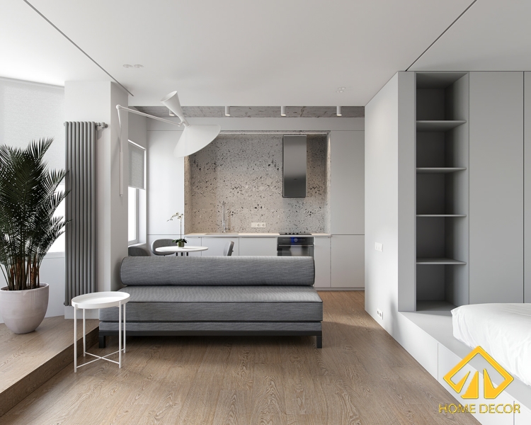 Tên dự án: Thiết kế chung cư tối giản tone trắng xám