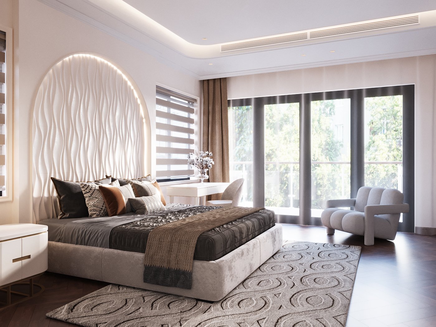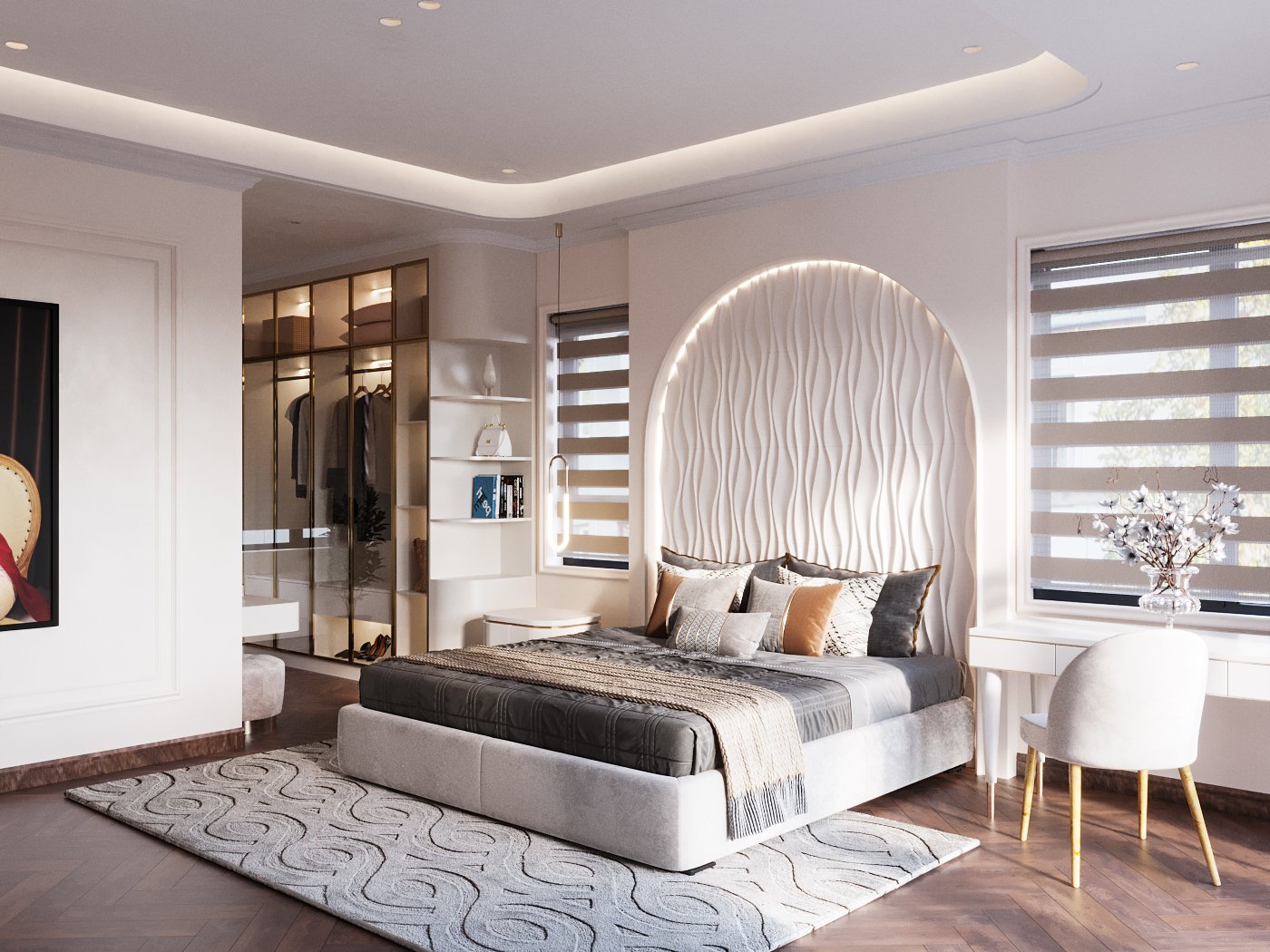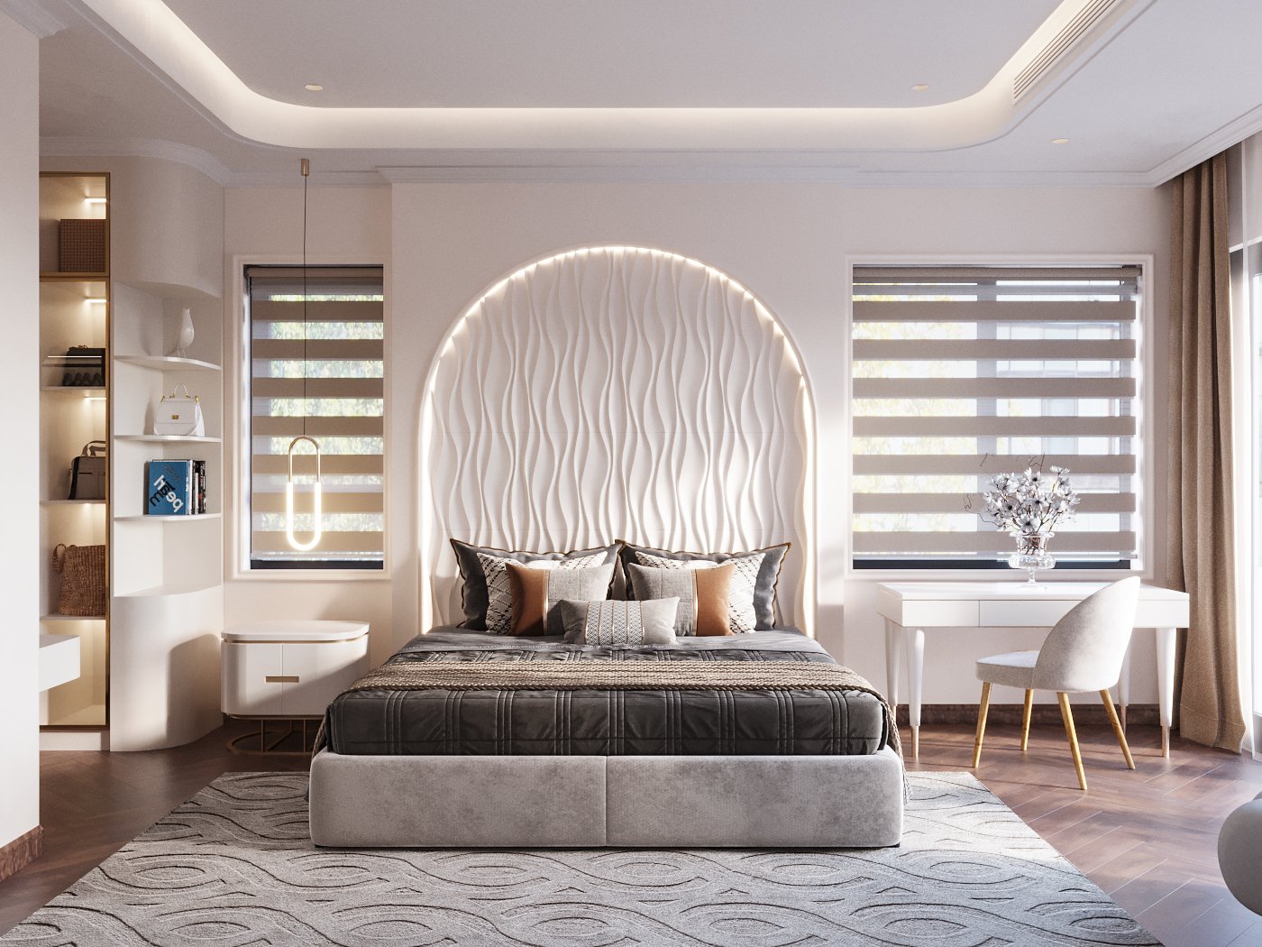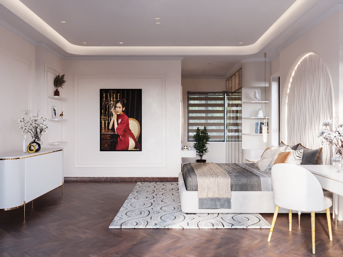 Tổng thể, phòng ngủ phong cách tân cổ điển là sự kết hợp hoàn hảo giữa sự sang trọng và hiện đại, tạo ra một không gian nghỉ ngơi đẳng cấp và ấm áp.