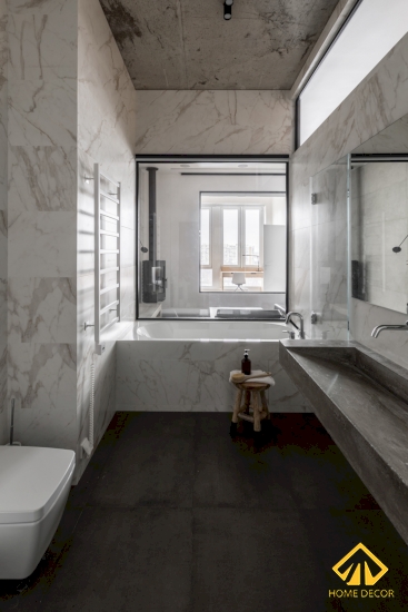 Phòng vệ sinh cũng được thiết kế với hai căn phòng nhỏ gọn, vừa thể hiện nét tối giản mà cũng toát lên được nét hiện đại trong đó.