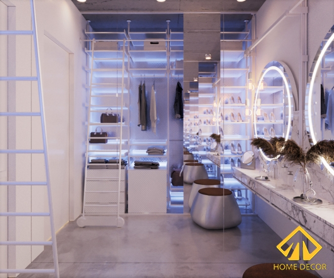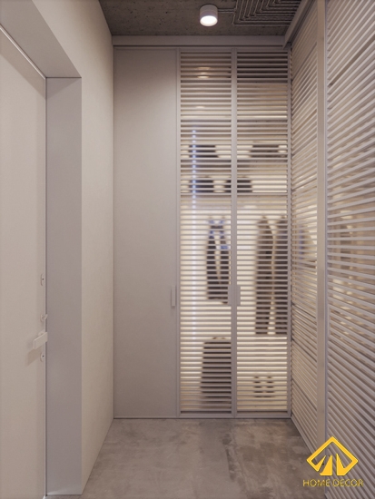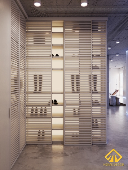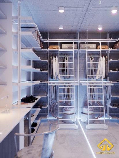 Có lẽ thiết kế độc đáo nhất chính là phòng tủ quần áo với những tấm gường to cao sát trần. Tạo cảm giác cho người nhìn thấy rộng rãi và ảo ảnh.