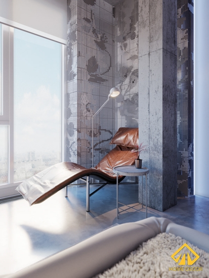 Đặt ngay cạnh cửa sổ lớn đó là chiếc ghế ngồi thư giãn bằng da màu nâu giúp anh Hoàng có thể nằm đọc sách, nghỉ ngơi, ngắm mọi thứ,..