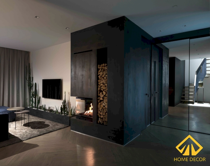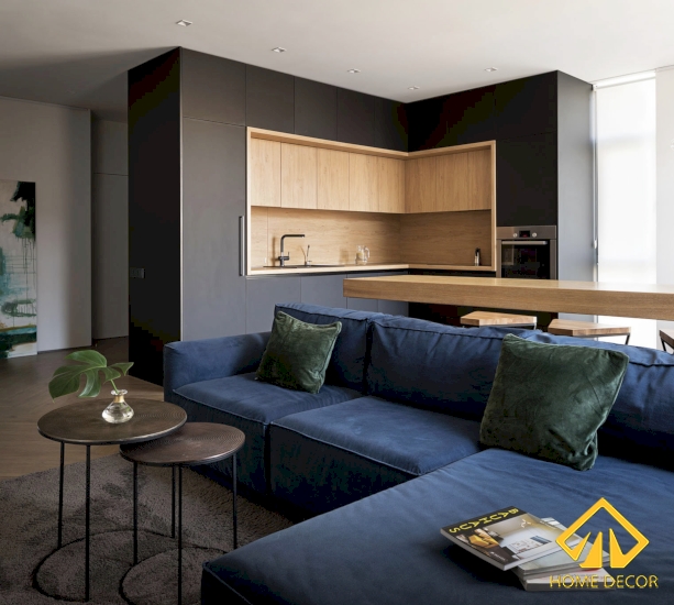 Trong căn phòng khách này, Home Decor sử dụng chiếc ghế sofa màu xanh navy để làm thay đổi không khí màu sắc trong nhà. Đồng thời còn đang tác động mang đến sự trẻ trung, hiện đại thêm nữa.