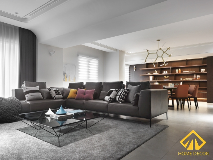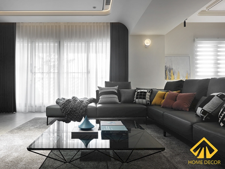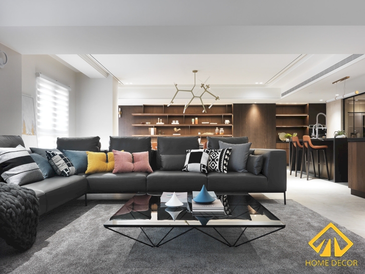 Với sự kết hợp này tạo nên một không gian hiện đại và sang trọng. Vì không gian diện tích nhỏ nên chúng tôi lựa chọn sắp xếp căn phòng khách được đặt ngay cạnh khung cửa sổ lớn để tạo nên được không gian mở rộng. Không chỉ vậy mà đồng thời cách sắp xếp thiết kế này còn mang đến cho căn phòng một bầu không khí trong lành cũng như nguồn ánh sáng từ thiên nhiên.