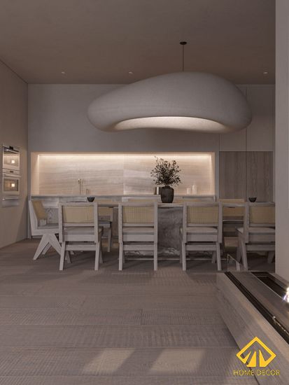 Để tiết kiệm được tối đa không gian cũng như mang đến cảm giác tiện lợi cho người sử dụng thì Home Decor chúng tôi sắp xếp đặt khu bếp nấu ăn này ngay cạnh không gian phòng khách.
