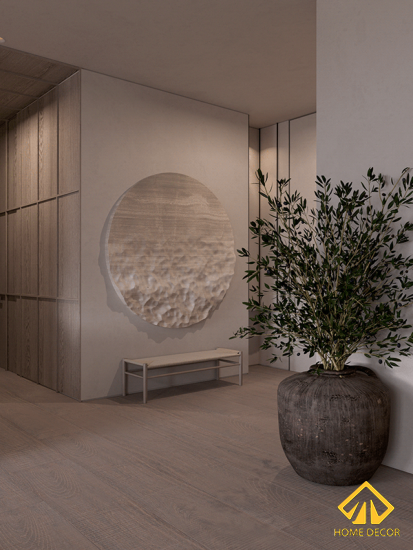 Không những vậy, để mang đến cho căn chung cư của anh Sơn có thiết kế hiện đại và tinh tế hơn nên Home Decor chúng tôi lựa chọn ngay những đồ vật trang trí như tấm đá treo tường, ghế ngồi dáng dài hay là lọ cây cảnh,.. Tất cả sẽ đều có những tone màu sắc hài hòa và đồng điệu với nhau giúp tổng thể lối đi ra vào ai ai cũng sẽ cảm nhận được sự tinh tế.