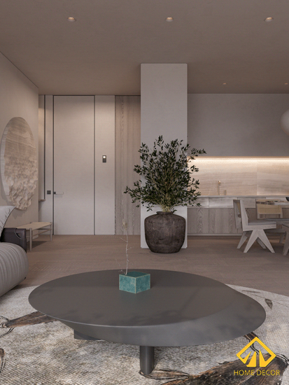 Với yêu cầu ban đầu của anh Sơn muốn thiết kế nội thất chung cư phải mang đến vẻ đẹp hiện đại song song cùng với đó sẽ là những nét nhẹ nhàng. Chính vì muốn đáp ứng được nhu cầu đề xuất của gia chủ mà Home Decor chúng tôi đã sử dụng ngay hai tone màu nâu gỗ nhạt giúp cân bằng được màu sắc tổng thể mà đồng thời giúp thể hiện được những nét Vintage nhẹ nhàng cho căn nhà.