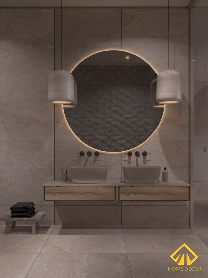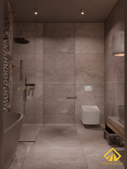 Khu vực vệ sinh chỉ cách phòng ngủ bởi một lớp kính trong suốt. Bên trong Home Decor bày biện, thiết kế với toàn bộ bề mặt là tấm gạch lát đá cẩm thạch màu kem vô cùng tinh tế và sang trọng. Chúng tôi sắp xếp đầy đủ các đồ dùng thiết bị vệ sinh cần thiết như bồn rửa mặt, bồn vệ sinh, bồn tắm nằm, bồn tắm đứng.