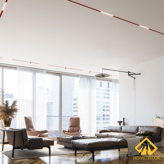 Tại sao mà Home Decor lại nói phòng khách này được thiết kế với không gian mở? Đó chính bởi nhờ những khung cửa kính cao rộng áp sát trần. Tấm cửa kính đó kéo dài từ đầu này sang đầu khác giúp tạo cảm giác căn phòng được rộng rãi, thoáng mát. Thậm chí nhờ nó mà không gian phòng khách mới có thể đón nhận được nhiều ánh sáng tự nhiên giúp gia chủ có thêm nguồn cảm hứng cho ngày mới.