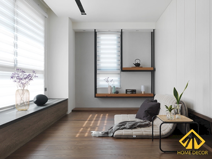 Ánh nắng, bầu không khí trong lành là điều mà bất cứ ai cũng muốn có trong căn nhà của mình. Bởi vậy nên Home Decor đã mang đến cho anh Tuân chủ nhà những khung cửa sổ to và rộng giúp mang đến nguồn động lực tích cực mỗi ngày. Cùng với đó chính là tường với trần nhà đều đang được lựa chọn dùng bằng các gam màu cơ bản như sàn lát gỗ nâu và tường trần sơn trắng vậy. Tuy rằng chỉ với gam màu đơn giản này thôi nhưng chắc chắn sẽ giúp làm nổi bật lên nét đẹp của đồ gỗ nội thất trong phòng khách.