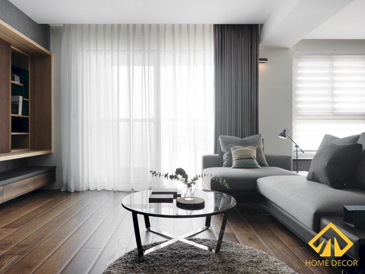 Bộ ghế sofa mà Home Decor đem vào sử dụng trong bản thiết kế này chính là mẫu ghế màu xám nhạt có dáng chữ L. Lý do mà chúng tôi đã lựa chọn dùng ghế sofa màu xám bởi nét đẹp xám khi đi chung với nền trắng - nâu sẽ vô cùng nổi bật. Hơn nữa, khi sử dụng kết hợp như vậy sẽ càng mang đến cảm giác sạch sẽ, không bám màu, bám bụi,..