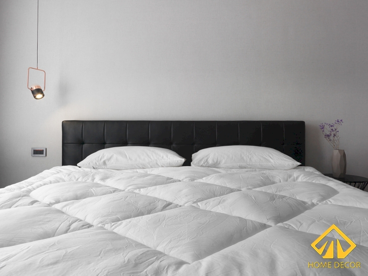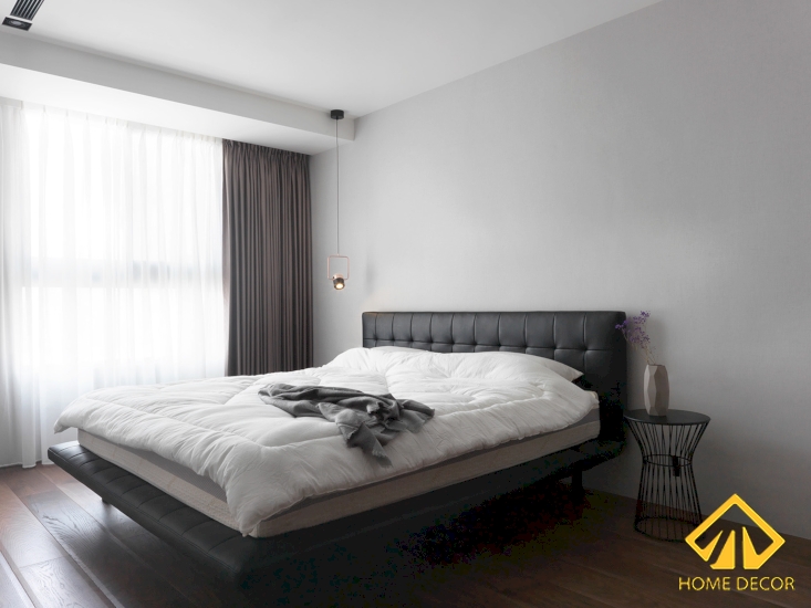 Đặc biệt là chiếc giường ngủ to bản bằng chất liệu da mịn màu đen tạo điểm nhấn khác biệt.