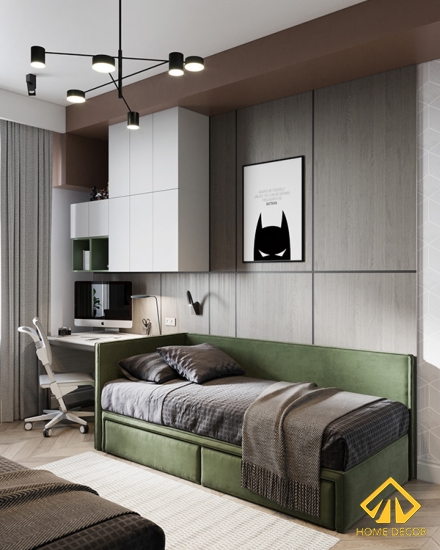 Tiếp đến đây chính là căn phòng ngủ với hai chiếc giường đơn có sở hữu phòng cách và màu sắc riêng biệt.