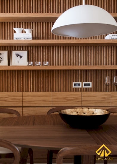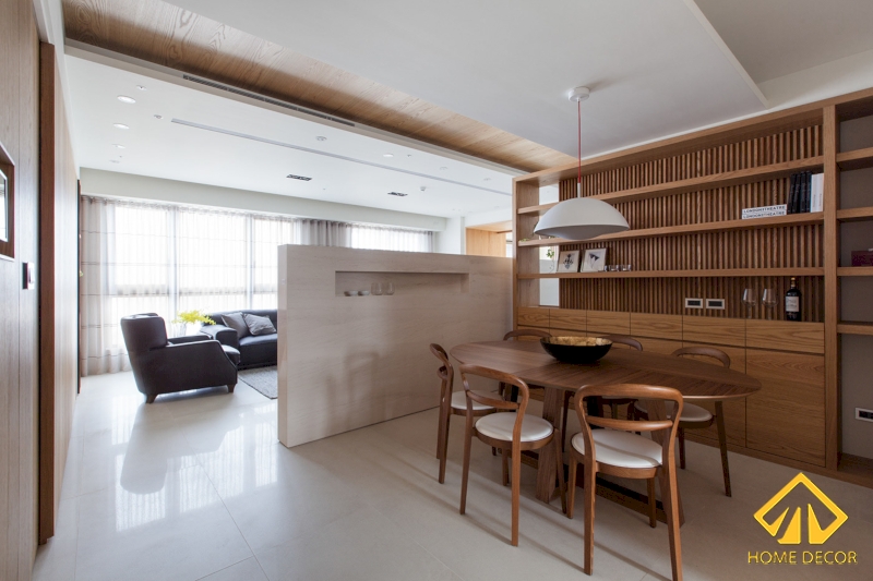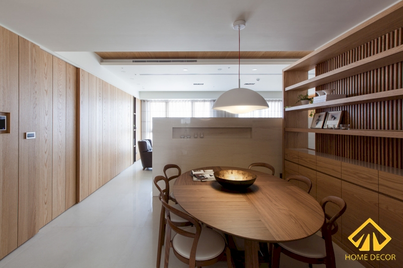 Có thể nói rằng, anh Minh và chị vợ vô cùng hài lòng với không gian thiết kế nội thất của phòng ăn. Bởi nơi đây sử dụng chủ yếu là bằng chất liệu gỗ, hơn nữa Home Decor tận dụng các chi tiết khắc họa của đồ nội thất Nhật Bản để đem vào bản thiết kế lần này.