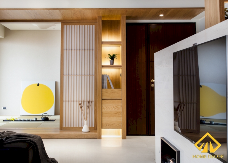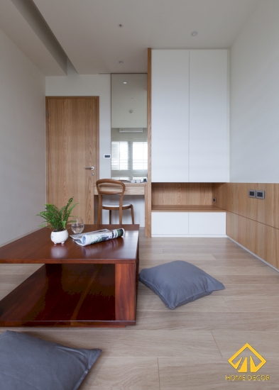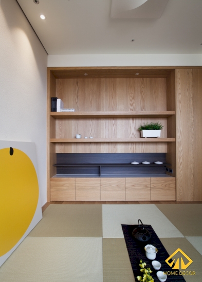 Để phù hợp với phong cách Nhật Bản như ban đầu anh Minh - gia chủ mong muốn thì Home Decor đã sắp xếp đặt ngay một căn phòng nhỏ gọn bên cạnh không gian phòng khách để làm khu vực trà đạo ngồi bệt.