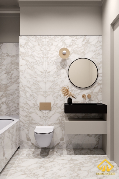 Đặc biệt đối với căn phòng vệ sinh của chung cư anh Hiệp, Home Decor chúng tôi đã sử dụng chủ yếu loại gạch vân đá vừa đáp ứng được đúng nhu cầu màu trắng chủ đạo mà tạo nên một không gian vệ sinh sạch sẽ và sáng sủa.