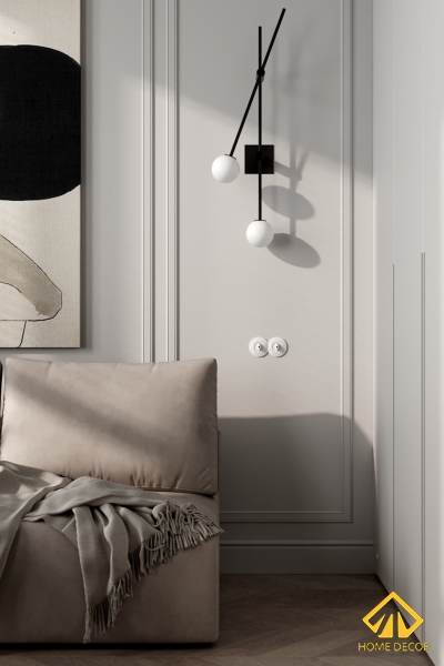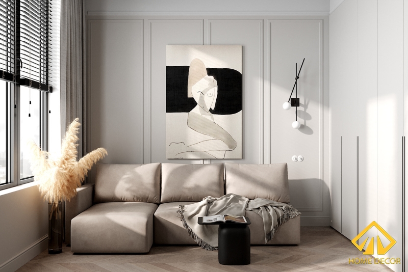 Ngoài ra để có thể mang đến một căn phòng khách hoàn chỉnh và đẹp mắt thì chắc chắn sẽ không thể thiếu những vật dụng cần thiết như đèn, bàn tiếp khách,.. Và Home Decor cũng không quên sử dụng những đồ dùng nội thất decor trang trí nhằm mục đích mang đến không gian khu vực phòng khách của căn chung cư nhỏ gọn này sẽ thu hút được nhiều ánh nhìn hơn.