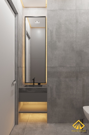 Với thiết kế đầy đủ các đồ thiết bị vệ sinh như bồn rửa mặt, bồn vệ sinh, phòng tắm đứng bọc kính. Chiếc bồn rửa mặt thì được chúng tôi đặt ngay bên ngoài cửa khi đi vào nhằm tạo được cảm giác thuận tiện và dễ dàng sử dụng.