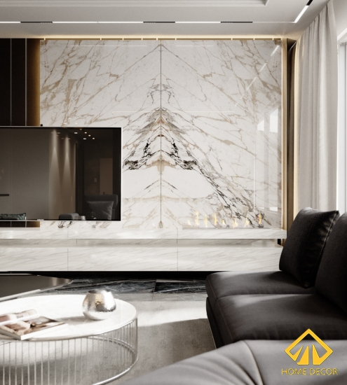 Tivi là một thứ chắc chắn sẽ không thể thiếu trong cuộc sống hiện nay của mọi gia đình. Chiếc tivi công nghệ màn hình phẳng mới này được Home Decor thiết kế nội thất đặc biệt với bước tường vách bằng đá ốp cẩm thạch màu trắng vừa tạo nên được nét đẹp hiện đại, tao nhã mà đồng thời còn làm nổi bật lên trên nền gạch đen bên dưới. Kệ tủ tivi chúng tôi cũng đã lựa chọn sử dụng làm bằng chất liệu gỗ, sơn phủ bên ngoài là lớp màu trắng sáng vô cùng tinh tế.